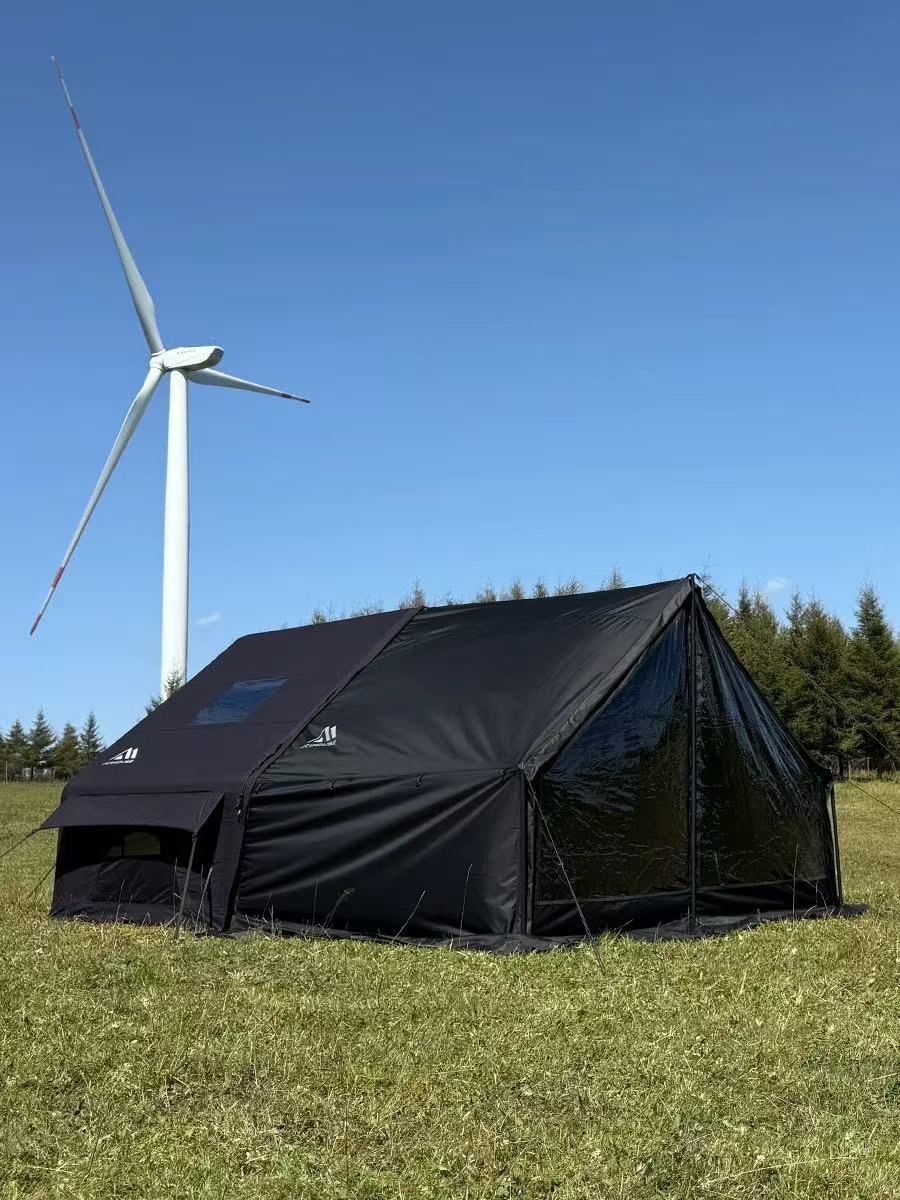 Kaidi 6.3+7.2m2 with expansion canopy. Outdoor camping camp. Overnight inflatable tent.Main ruler size: 3x 2.1 X 2.1 M. The size of the canopy expansion: 3×2.4 X 2.1 M.210 g technology waterproof cotton, 36kg. The floor is made of PVC waterproof material!
